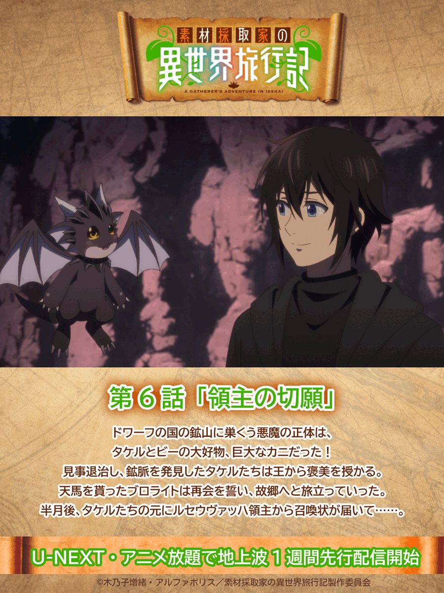 @col_de23実は結構素材採取好きって言ったらみんな軽蔑するか? 素材採取家の異世界旅行記 第5話を視聴しました!#dアニメストア animestore.docomo.ne.jp/animestore/cd?…