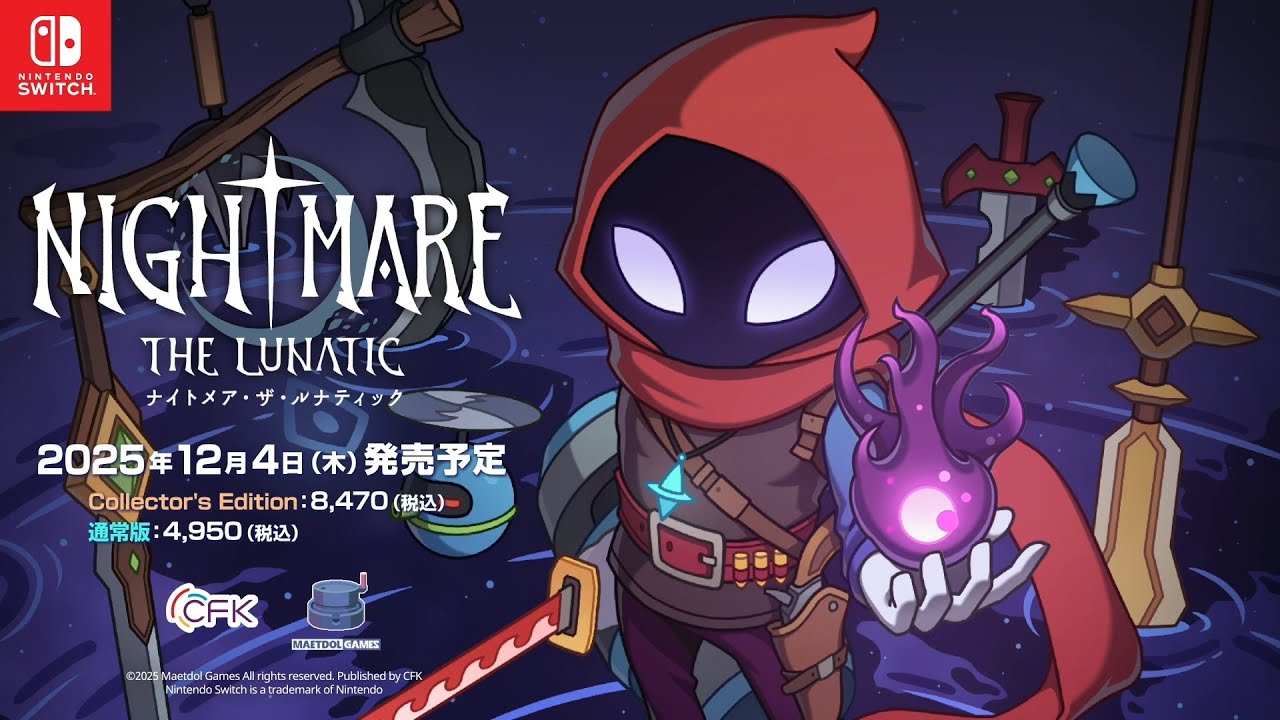 『Nightmare: The Lunatic』は、2025年12月4日(木)にNintendo Switch版が発売予定。PC版は2024年3月31日にリリース済みで、ローグライト要素を持つ高難易度アクションゲームです。