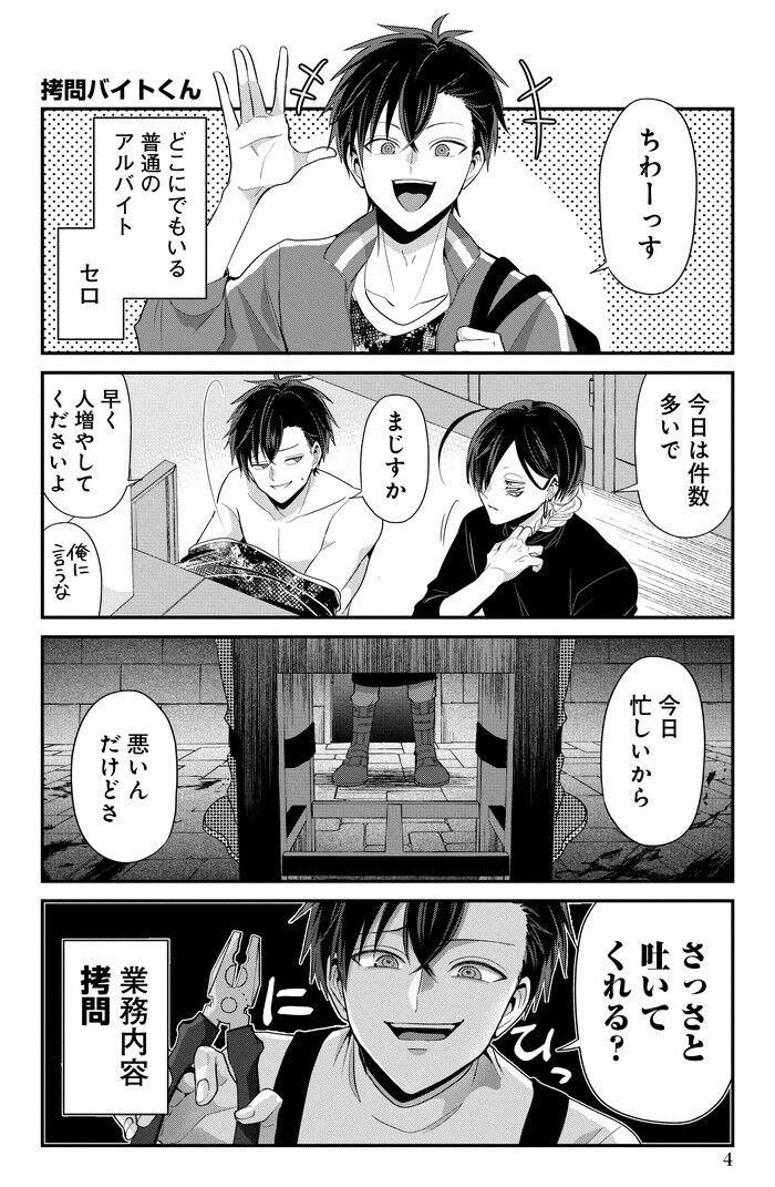 第3話では、拷問バイトくんの日常に“新たな仕事の波”が押し寄せます。いつものように軽い気持ちでバイトに向かった彼ですが、今回はこれまで以上にクセの強い依頼人が登場し、予想外の展開に巻き込まれていきます。拷問といっても物騒なものではなく、あくまで“ゆるい日常系の延長”として描かれ、依頼人のこだわりやバイトくんのツッコミがテンポよく進む回です。最終的には、依頼人の意外な弱点が明らかになり、バイトくんが思わず優しさを見せる場面も描かれます。